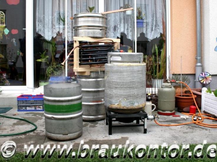 Eine Automatisierung kommt aber nicht in Frage, wir wollen in Handarbeit brauen, denn die Nähe zur Herstellung und das "Dabeisein" ist das eigentlich Wichtige. Als angenehmer Nebeneffekt kommt hinzu, dass unsere gesamte Anlage praktisch im Auto transportierbar ist und überall funktioniert.